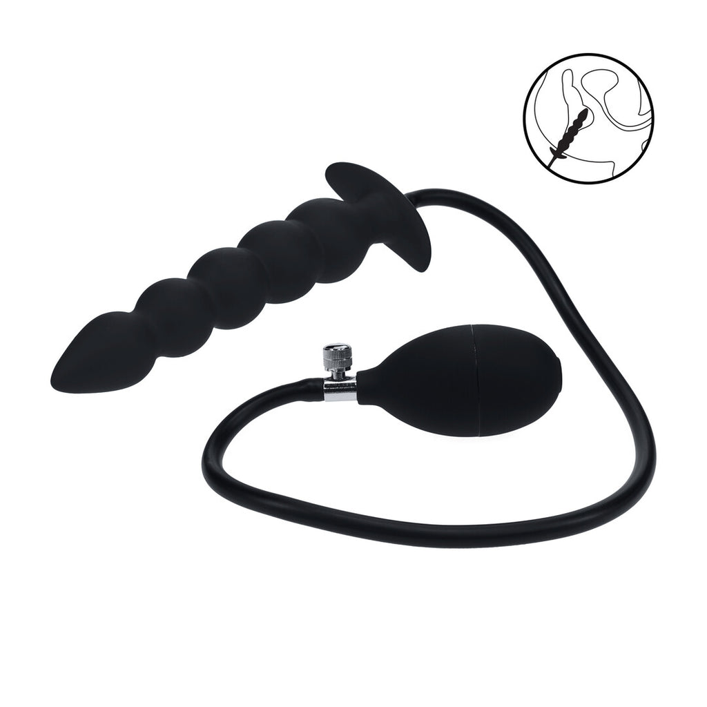 Take your pleasure to the next level with this beaded silicone inflatable plug. The graduated bead design delivers thrilling stimulation with every movement, while the inflatable feature allows for controlled expansion up to a maximum size of 12 cm. Made from smooth, body-safe silicone and finished with a flared base for safe, secure play.