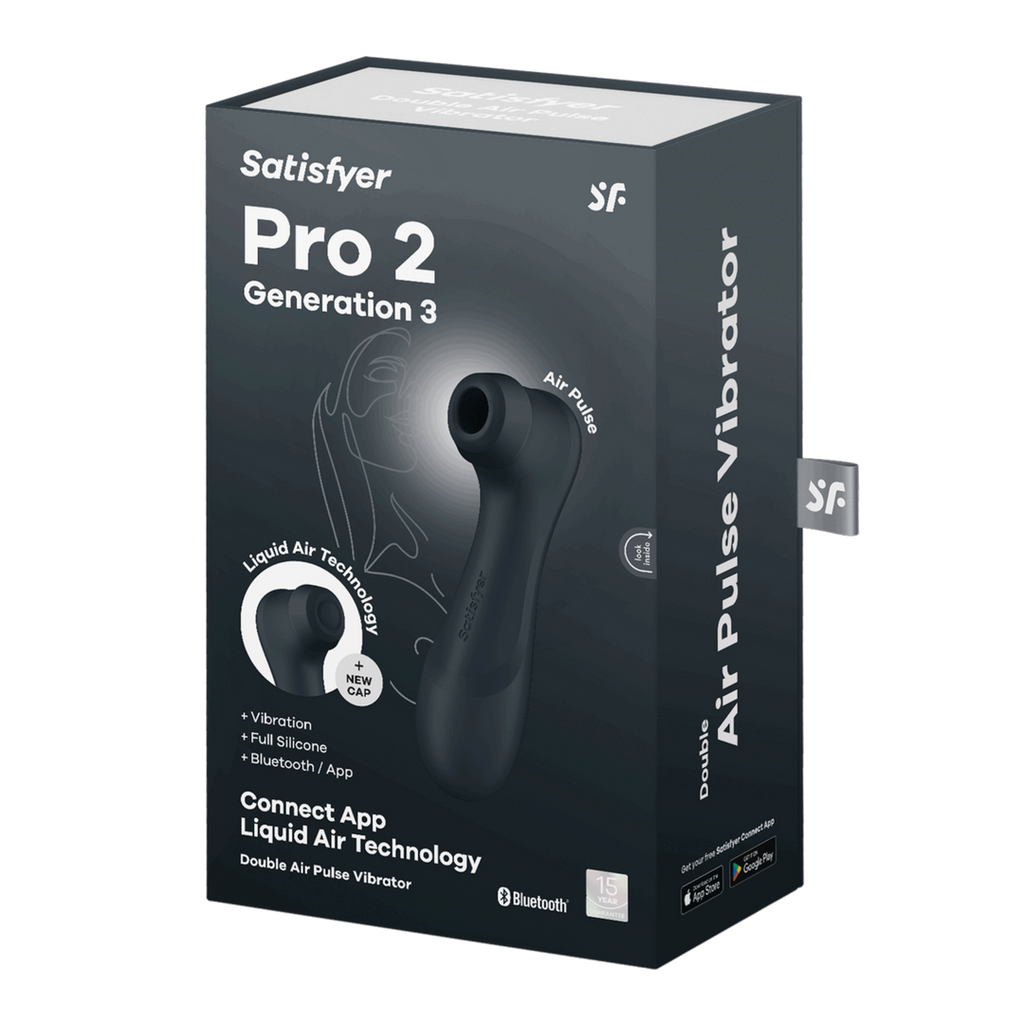 Get ready for a new wave of pleasure! The Pro 2 Generation 3 is the latest edition of our iconic Air Pulse pleaser, now also with vibration and innovative Liquid Air Technology which creates a sensation like the sensual surge of pulsing water. With a smooth, silky silicone finish and a weighted head for ergonomic handling, the Pro2 Gen3 delivers the intense orgasms you know and love. But now, you'll be flooded with the pleasure of a tapping touch as the air pressure waves arouse your clitoris through a thinly sheathed cap. Bluetooth enabled, the Pro2Gen 3 Connect App pairs with our award-winning, free, Satisfyer Connect app, giving you the option to have complete control the powerful motor and truly customize your pleasure. Of course, you always have the option to use without the app and control via the panel buttons for 11 pressure wave and 12 vibration program options. The Pro2 Gen 3 Connect App is made of body safe silicone, is rechargeable, and is IPX7 Waterproof rated. Enjoy the rush!