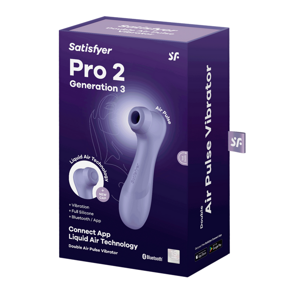 Get ready for a new wave of pleasure! The Pro 2 Generation 3 is the latest edition of our iconic Air Pulse pleaser, now also with vibration and innovative Liquid Air Technology which creates a sensation like the sensual surge of pulsing water. With a smooth, silky silicone finish and a weighted head for ergonomic handling, the Pro2 Gen3 delivers the intense orgasms you know and love. But now, you'll be flooded with the pleasure of a tapping touch as the air pressure waves arouse your clitoris through a thinly sheathed cap. Bluetooth enabled, the Pro2Gen 3 Connect App pairs with our award-winning, free, Satisfyer Connect app, giving you the option to have complete control the powerful motor and truly customize your pleasure. Of course, you always have the option to use without the app and control via the panel buttons for 11 pressure wave and 12 vibration program options. The Pro2 Gen 3 Connect App is made of body safe silicone, is rechargeable, and is IPX7 Waterproof rated. Enjoy the rush!