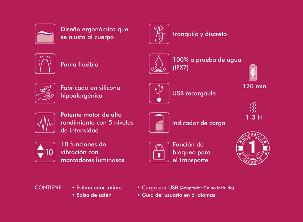 • 10 vibration modes with multiple intensity levels for varied sensations
