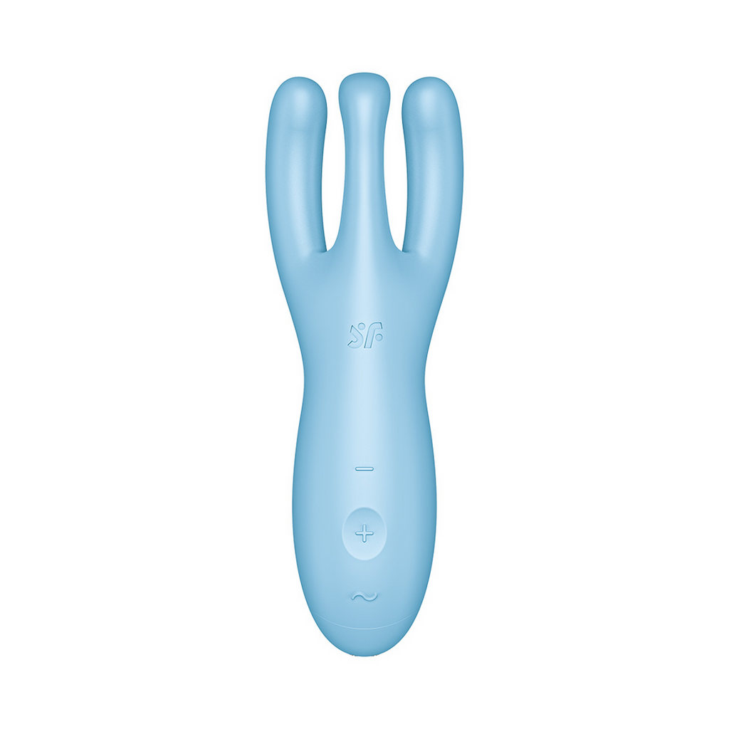 Be the connoisseur of your pleasure! This versatile take on a Lay-on vibrator comes equipped with a firm body and flexible arms for ideal clitoral and labia stimulation. Welcome to Threesome 4! Adjust the flexible arms to stimulate multiple different erogenous zones with ease. Experience broad and targeted stimulation with arms built to hit all the right spots! Utilize the smaller, rounded, arms for centered stimulation and the pointed tip of the middle arm for very targeted clitoral stimulation. With 3 powerful motors, one located in each arm, and bluetooth enabled, the Threesome 4 connects to the award-winning, free, Satisfyer Connect App, giving you the option to have complete control the powerful motors and truly customize your pleasure. The Threesome 4 is made of body-safe silicone, is rechargeable and waterproof (IPX7). The threesome you never knew you needed…