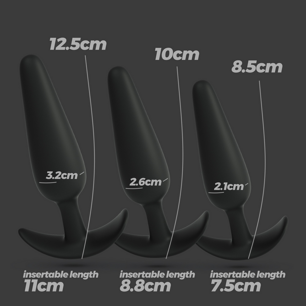 Anal pleasure awaits! Tic Tac Toe is made for you. This set made of 3 anal plugs in different sizes is just right for your anal training sessions.The gradual insertion pyramidal shape, allows a pleasant insertion, the special shaped base makes it safe for use vaginal penetration and street fun.Cleaning is super easy, wash with warm water and mild soap or use a toy cleaning spray. Use antibacterial cleaning spray for best results. Dry and store away from light and heat sources.The use of lubricant is advised. Always use waterbased lubricants. Oils and other types of lubricants will damage the integrity of the material.Crushious lubricants are the best addition to your Crushious toys.Dimensions:Small - 8,5 cm long 2,1 cm in diameter.7,5 cm insertable length.Medium - 10 cm long 2,6 cm in diameter.8,8 cm insertable length.Large - 12,5 cm long 3,2 cm in diameter.11Â cm insertable length.Material:Silicone.